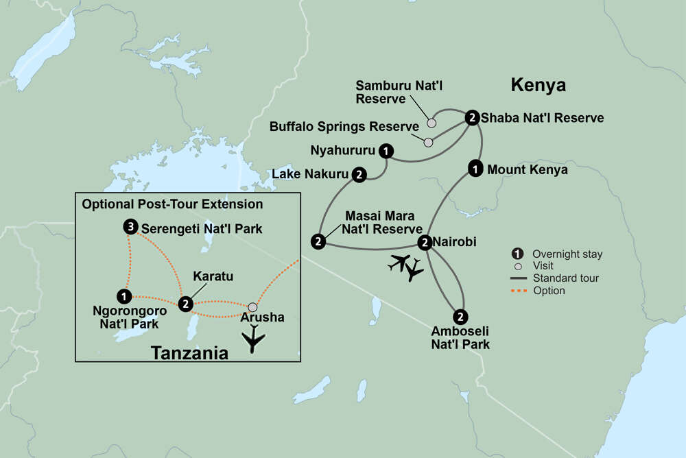 Adventure stirs the soul in Kenya. Arrive in the heart of safari country. As arrival times will vary, there are no scheduled activities today, allowing you to settle in at your own pace. Dinner this evening is at your leisure.